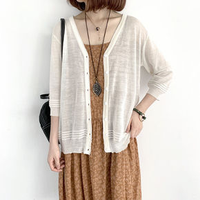 包邮夏季薄款冰丝针织衫女开衫大码宽松防晒衣披肩外套...