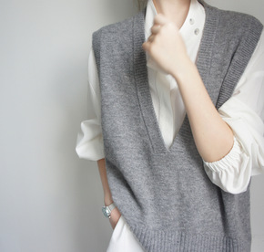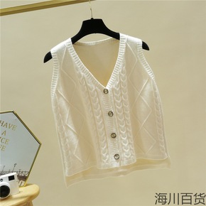 v领针织马甲女毛衣秋冬新款韩版宽松百搭毛线背心坎肩...