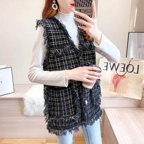 马甲背心织女欧洲站春秋新款宽松外穿无袖坎肩菱格毛衣...