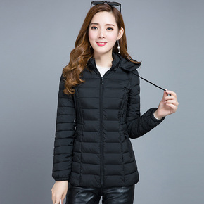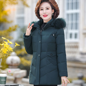 老年人羽绒服女中长款轻薄连帽毛领外套60-70岁老...