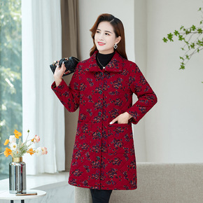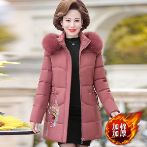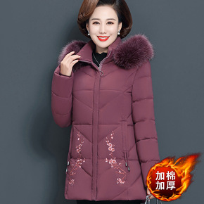 中年妈妈中长款棉衣外套中年女装秋冬装加厚羽绒棉服中...