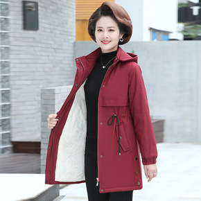中年妈妈冬装外套中老年人风衣女中长款加绒加厚大码洋...