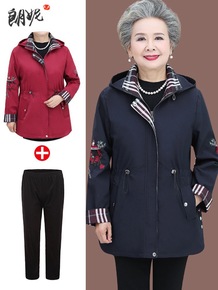 奶奶秋装薄款风衣中老年人女妈妈春秋老人春夏款休闲衣...
