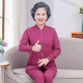 秋冬季妈妈开襟空气层夹棉保暖内衣套装中老年人加厚奶...