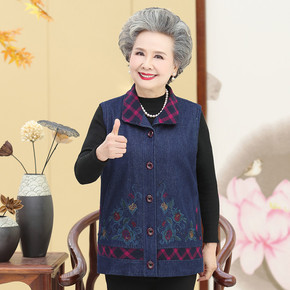 老人妈妈春秋马甲中老年人春装女外套奶奶装牛仔马褂坎...
