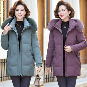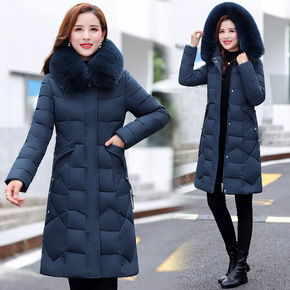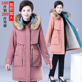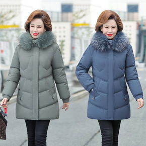 妈妈羽绒棉服女中长款2021新品大毛领韩版大码中老...