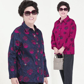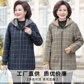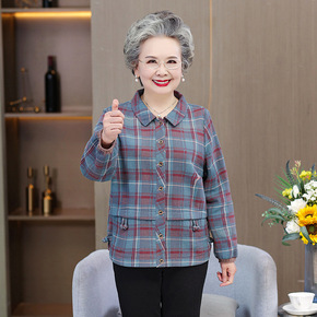 中老年人女装厚外套春秋装老人衣服开衫千鸟格上衣大码...
