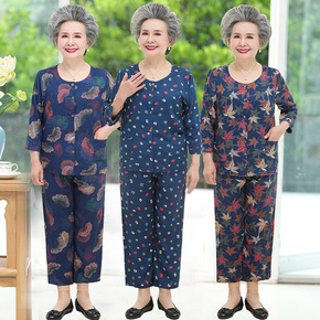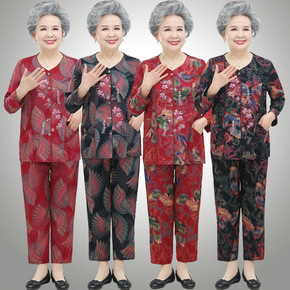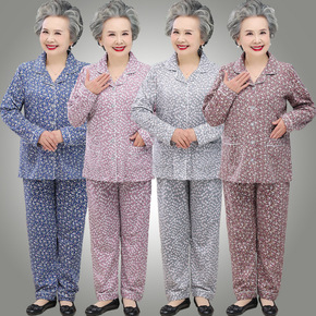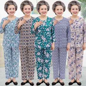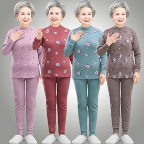 奶奶保暖秋衣秋裤套装中老年人春秋女纯棉打底老太太半...