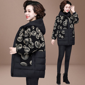 新款妈妈冬装棉衣中长款高贵中老年女连帽花棉袄加厚加...