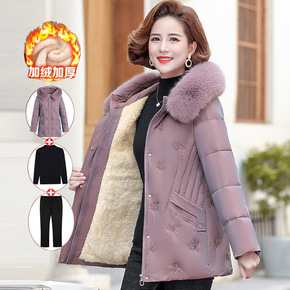 妈妈冬装棉衣加绒加厚50岁中年女棉袄中长款中老年女...