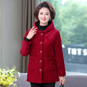 妈妈冬装加绒加厚棉衣外套2022新款中老年女秋冬棉...