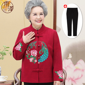 中老年人棉衣女装妈妈装冬装唐装衣服奶奶喜庆毛呢子外...