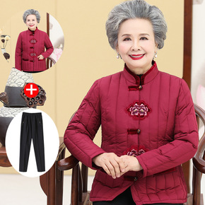 老年人冬装女奶奶装羽绒棉衣服60岁老年人妈妈装棉袄...