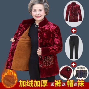 奶奶装冬装加绒棉衣中老年人冬装女加绒加厚棉袄老人衣...