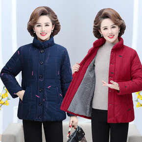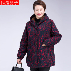 中老年人女装妈妈秋冬装印花棉衣奶奶装加绒加厚短款妈...