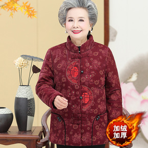 奶奶棉袄加绒加厚女中老年人冬装妈妈棉衣短款老太太棉...