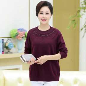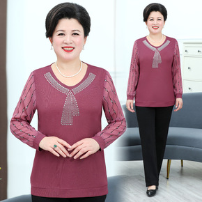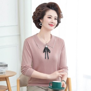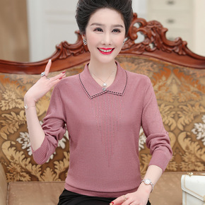 中年妈妈春装长袖针织T恤小衫2021新款中老年女春...