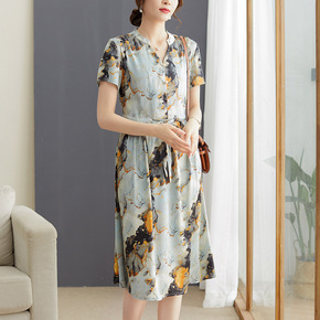 裙子50连衣裙中老年雪纺中年岁妈妈夏季过膝洋气减龄...