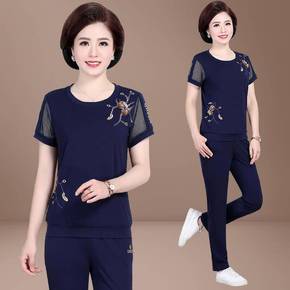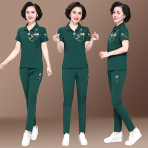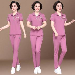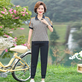 妈妈装夏装短袖中年女装运动套装女夏季中老年休闲服两...