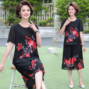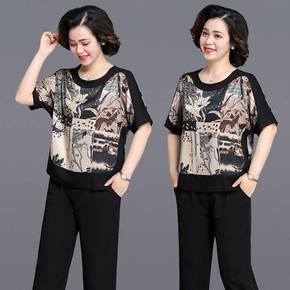 中老年妈妈装两件套夏装40-50岁雪纺衫女上衣夏季...