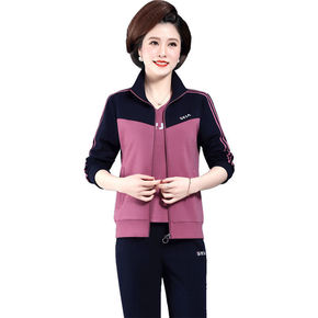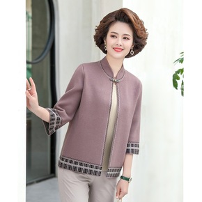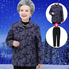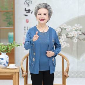 奶奶春装套装两件套老年女装妈妈外套女春秋针织开衫上...
