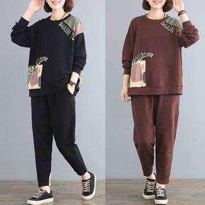 中老年妈妈装200斤宽松加大码卫衣两件套春秋季女装...