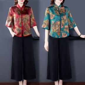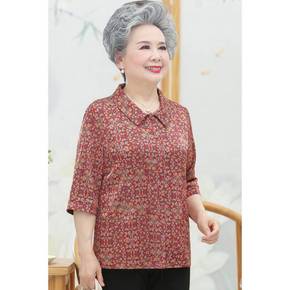 中老年人夏装女真丝衬衫奶奶装中袖套装老人衣服老年女...