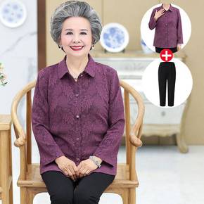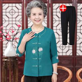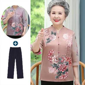 中老年人夏装女妈妈装衬衣套装60岁80人衣服老太太...