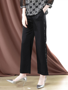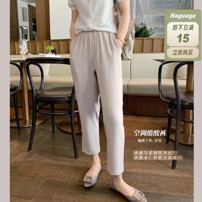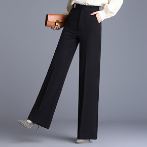 2021秋季新款天丝棉阔腿裤子宽松直筒休闲黑色裤子...