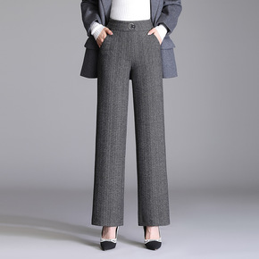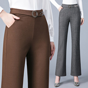 妈妈裤子女秋季2021新款弹力直筒休闲长裤外穿高腰...