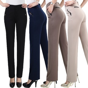 春夏季薄款女裤子长裤中老年妈妈直筒裤显瘦大码弹力高...
