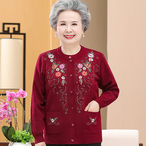 中老年人春秋上衣女奶奶装针织外套70岁妈妈毛衣新款...