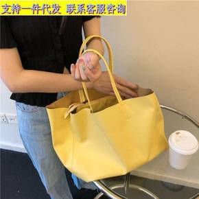 大容量包包女2022夏季新款奶油黄托特包百搭软皮复...
