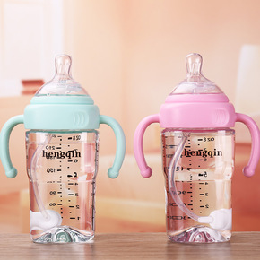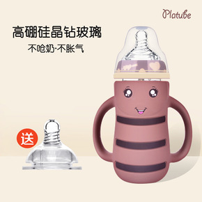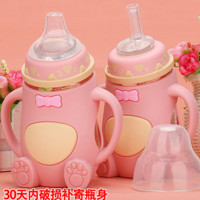 批发宽口径玻璃奶瓶宝宝防胀气婴儿用品防摔带吸管儿童...