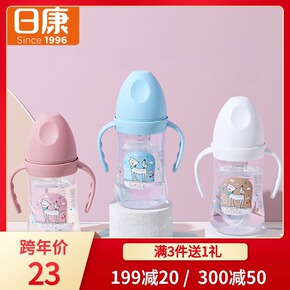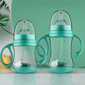 PP奶瓶180ml婴儿带手柄标准口径宝宝无吸管直身...
