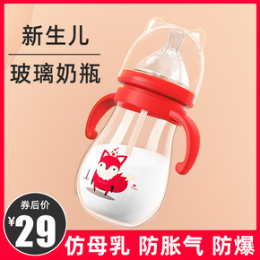 玻璃奶瓶婴儿宝宝新生儿宽口径带吸管手柄 钢化玻璃防...