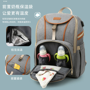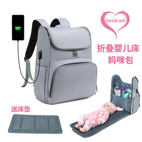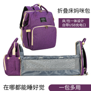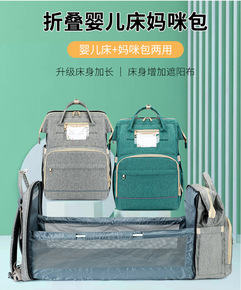 2021新款双肩大容量妈咪包简易婴儿床母婴背包多功...