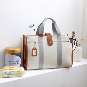 新款时尚帆布妈咪包 手提包大容量单肩斜跨妈妈包多功...