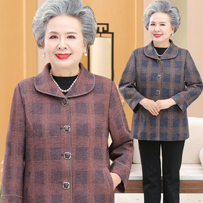 奶奶装秋冬装毛呢外套女60岁70岁中老年人女妈妈短...