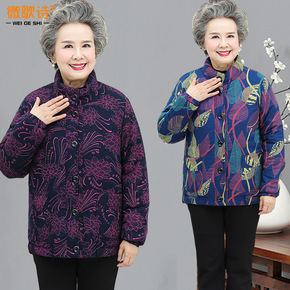 中老年女装秋冬新款加棉印花小棉衣50岁60妈妈装大...