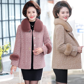 中年妈妈装秋冬新款毛领仿貂绒大衣短款中老年女装加棉...