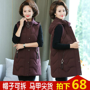 中老年秋冬棉马甲女中长款羽绒棉衣可拆卸帽妈妈装40...