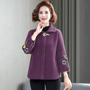 中老年人女装秋装外套妈妈冬季洋气毛呢太太春秋60-...