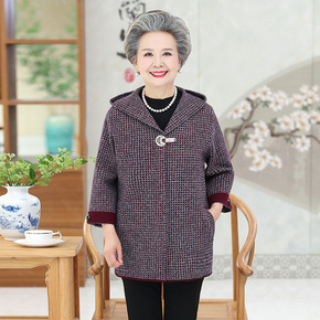 中老年外套女中长款奶奶春秋60毛呢老年人春装女大衣...