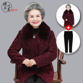 老年人冬装女加绒加厚雪貂绒外套奶奶中长款呢大衣宽松...