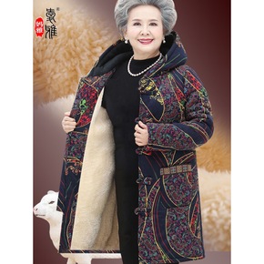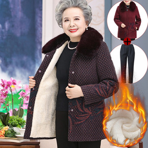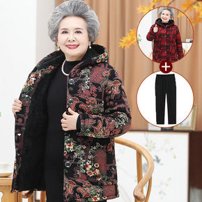奶奶装棉衣加绒加厚新款老年人冬装女棉袄中长款老人外...