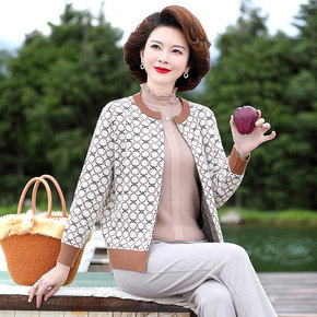 妈妈短款针织外套中年女春装夹克开衫中老年春秋洋气高...