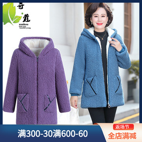 妈妈冬羊羔毛外套加绒加厚中长款大衣中年女时尚洋气颗...