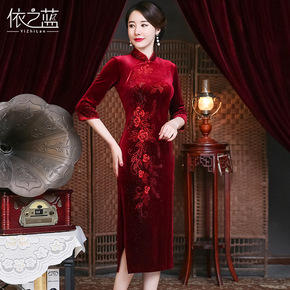女长款修身高端婚宴秋装刺绣礼服连衣裙阔太太套装妈妈...