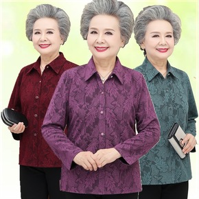 老年人秋装女长袖衬衫奶奶装纯棉上衣老人全棉碎花开衫...
